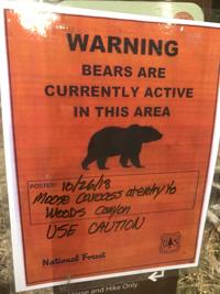 A sign along the lowest reaches of the Woods Canyon trail on the edge of Jackson tells hikers to beware of critters that might be scavenging the remains of a moose carcass.