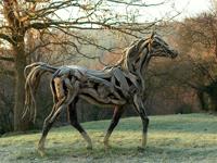 Heather Jansch always loved drawing horses. One day, though she can’t say where the inspiration came from, she decided to sculpt life-size horses from driftwood. Since then, many artists have imitated her style. To make her work able to live outside, she started casting her driftwood sculptures into bronze, like “Apollo,” shown here.